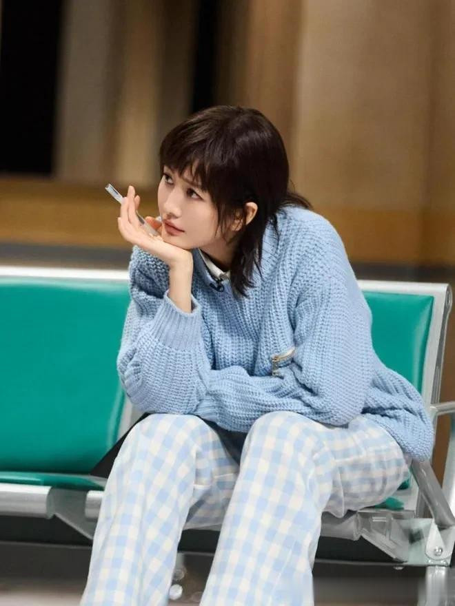 42岁王鸥剪短后像换了个人! 穿蓝毛衣+格子裤时髦减龄 差点认不出
